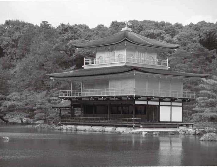 但本名鹿苑寺的金阁寺是没法不去的,一座巍峨的金殿矗立于湖畔,环湖而行,望着它,想象三岛由纪夫笔下的那位小和尚,想象小和尚当天望着金阁寺的那对小眼睛,以及一九五○年的那场神秘大火,一段疑幻似真的旧事像电影般在眼前重演。视网膜便是大银幕,作家用虚构定影了历史,像替金阁多建了一层空间。