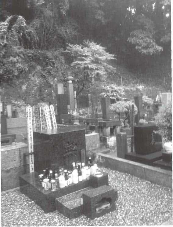 带酒,因为小津生前好酒,拍戏时喝,不拍戏更喝。他喝得讲究,喜用锡壶温酒,并把温度控制在摄氏五十五度。他也喜半夜喝酒,喝了两三瓶,引吭高歌,醉倒在地,醒来便去导戏,有时候醒不来,要由副导演到他家把门踢开,朝他头上浇水,硬拉他起床去片场。小津迷爱小津,担心他死后没酒喝,特地携酒来敬,置于墓前,一个个小瓶子,来自五湖四海各城各国,啤酒清酒威士忌皆全,我忘了,否则买备一罐生力啤,代表香港,输人不输阵。